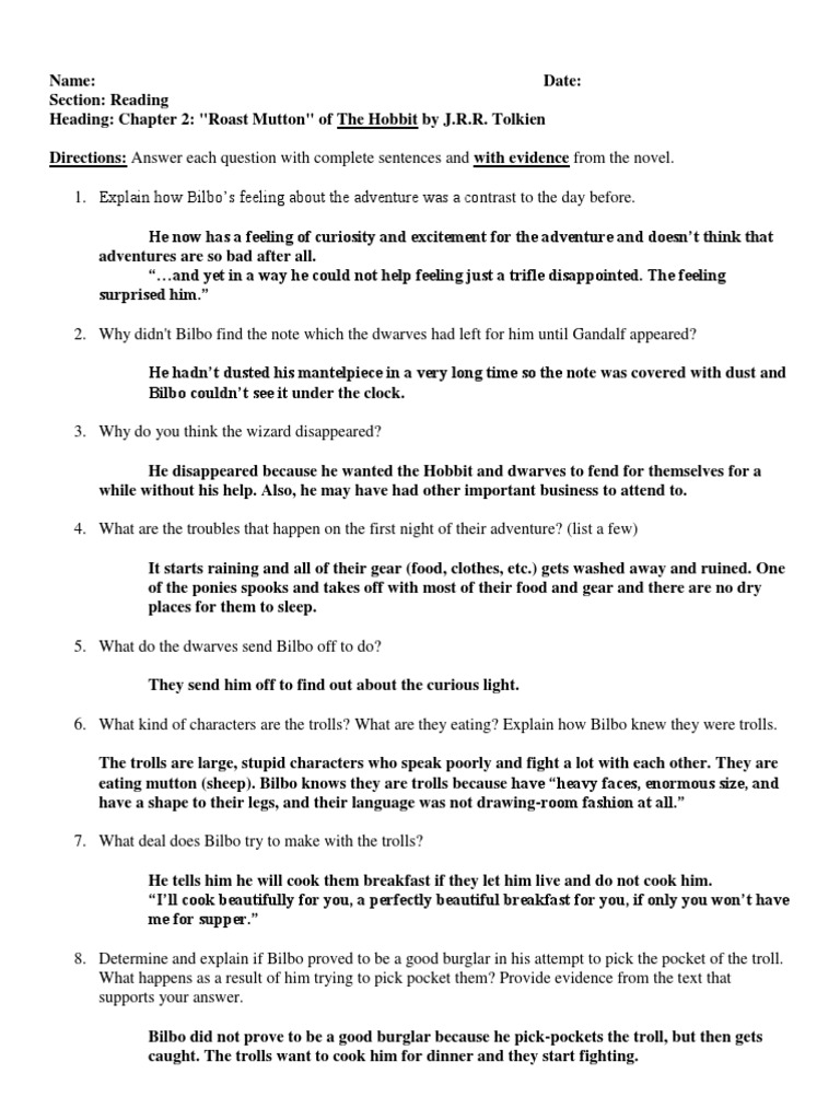 The Hobbit Questions Pdf Bilbo Baggins The Hobbit